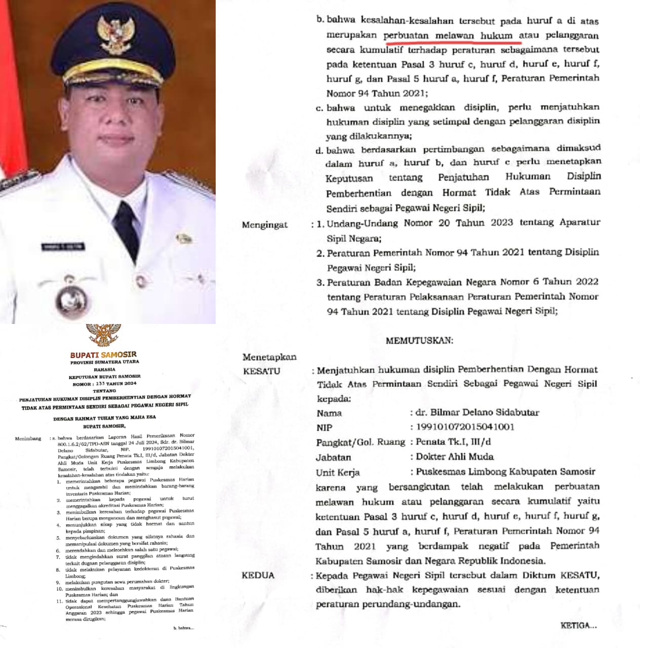 Pernyataan Bupati Samosir Vandiko T. Gultom kembali memicu kritik keras. Ia dinilai bertindak seolah-olah hakim setelah menyebut adanya perbuatan melawan hukum dalam kasus dr. Bilmar Delano Sidabutar, padahal belum ada putusan pengadilan yang berkekuatan hukum tetap.
